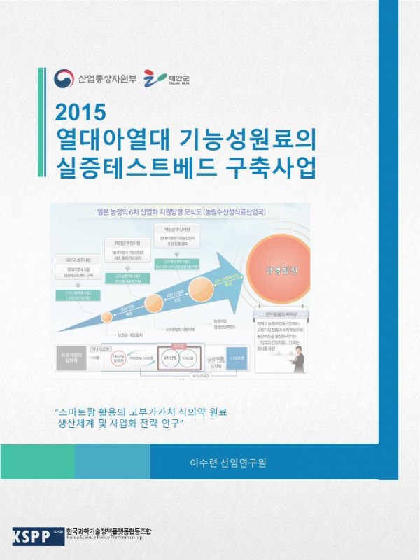2015 열대아열대 기능성원료의 실증테스트베드 구축사업 관련링크 페이지 정보 작성일20-02-19 18:51 조회5,249회 본문 스마트팜 활용의 고부가가치 식의약 원료 생산체계 및 사업화 전략 연구 이전글 목록