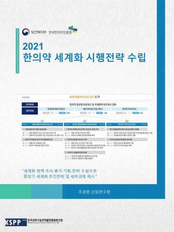 한의약 세계화 시행전략 수립 관련링크 페이지 정보 작성일22-03-03 13:13 조회6,283회 본문 한의약 정책의 글로벌 역량 강화를 위한 정책 조사 및 대안 제시 이전글 다음글 목록